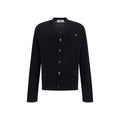 Cotton Alex Cardigan by Vivienne Westwood, featuring V-neck front, front button closure, contrasting embroidered iconic brand logo, monochrome pattern, regular fit.