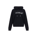 Cotton Big Bookish Skate Hoodie by Off-White, features hood with adjustable drawstring, ribbed cuffs, ribbed hem, front kangaroo pocket, iconic brand monogram printed in contrasting color on front, regular fit.
