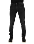 Black Washed Cotton Skinny Denim Jeans