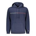 Elevate your casual wardrobe with a touch of sophistication in this Tommy Hilfiger hooded sweatshirt. It’s the epitome of comfort meets style, crafted with 95% regenerative cotton and featuring a signature brushed finish. The bold blue hue is offset by a striking Tommy Hilfiger print and logo, making a statement with every wear. A central pocket adds a functional touch to this trendy piece, perfect for fashion-forward individuals.