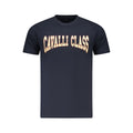 Elevate your casual wardrobe with the Cavalli Class designer flair in this sleek blue T-shirt. Expertly crafted from superior cotton, it boasts short sleeves and a classic crew neck, all stylishly adorned with the brand’s signature print and iconic logo. Perfect for fashion-forward individuals craving a touch of luxury in their everyday wear.