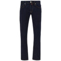 Discover the epitome of Italian craftsmanship with Tramarossa’s impeccable dark blue jeans. Precision-engineered for the modern man, these regular-fit denims blend tradition with comfort, offering a hint of stretch for ease of movement. Each pair is accentuated by a luxurious blue suede patch, graced with the brand’s metallic emblem – a true testament to your discerning style. Perfect for those who command quality and elegance in their sartorial choices.