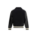The Golden Collection bomber Jacket by Golden Goose in fabric features a relaxed boyfriend fit with striking contrast details in white. Leather sleeves with tone-on-tone patches outlined in white enhance the design, while the front button closure and two front pockets combine practicality with style