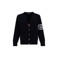 Cotton Cardigan by Thom Browne, contrasting button front closure, ribbed cuffs, ribbed front v-neck, two front slit pockets, ribbed hem, iconic contrasting brand bands on arm, regular fit.