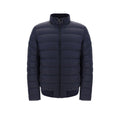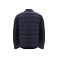 Circuit Down Jacket by Belstaff, high collar model adjustable with buckle, front closure by double-slider zipper, two welt pockets with side snap buttons, elasticated cuffs, elasticated ribbed hem, iconic brand monogram patch on left sleeve, monochrome pattern, regular fit.