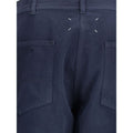 The Margiela Cotton Trousers blend elegance with signature details. The fabric features tonal stripe embroidery across the entire surface and the iconic contrasting stitch on the back for a distinctive touch. Belt loops accommodate a belt, while a zip, hidden hook, and single visible button ensure practical closure. Five classic front pockets and two back patch pockets complete the design, with a raw-cut hem adding a modern finish