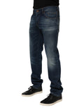 Dark Blue Washed Cotton Skinny Men Denim Jeans