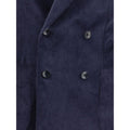 The Gi Capri double-breasted Blazer reinterprets sartorial tradition with contemporary elegance. Designed with peak lapels enriched by a removable brooch, it features a double-breasted front closure that enhances its refined character. The two patch pockets with button fastening and the chest pocket complete the structured design, balancing functionality and style. Timeless and versatile, this piece is crafted to effortlessly complement both formal and everyday looks, always adding a distinctive allure.