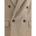 The Double-breasted Knit Jacket by Lardini is a refined example of tailoring reinterpreted with a modern twist. Crafted from ribbed knit fabric, it features classic lapels, a double-breasted closure, and two functional front pockets. The signature Lardini flower logo on the left collar completes the design, adding a subtle yet iconic detail. An ideal piece for those who appreciate elegant yet relaxed style, perfect for versatile wear.