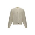 The Virgin Wool Cardigan by Jacquemus combines elegance and comfort, featuring front buttons that emphasize its refined silhouette. The long sleeves and ribbed trims add a touch of classic style, while the embroidered detail on the right side provides a distinctive and sophisticated element to the piece.