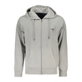 Elevate your casual wear with the sleek and sustainable ‘Accademia Militare’ hoodie. This long-sleeved gray masterpiece merges functionality with fashion, featuring two central pockets, a convenient zip, and distinct embroidery that proudly displays the logo. Crafted from a blend of recycled cotton and polyester, this hoodie is a conscious choice for the eco-aware fashionista. Experience comfort without compromising on style.