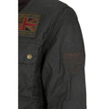 Jacket by Barbour International, classic ribbed collar, concealed front zipper and snap button closure, two side welt pockets, iconic contrasting embroidered logo patch on sleeve, one patch flap pocket for closure on front, contrasting ribbed turn-up cuffs, regular fit.