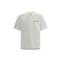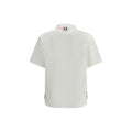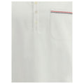 Thom Browne’s jersey polo Shirt combines the elegance of a classic cut with the brand’s iconic details. Made of soft jersey, it features a traditional collar and a mid-bust button closure for an understated yet refined look. On the front, a patch pocket is embellished with embroidery in the brand’s signature colors, adding a distinctive and recognizable touch. Completing the design is the iconic Thom Browne signature patch on the bottom, which seals the garment with understated elegance.