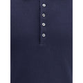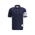 Thom Browne’s jersey polo Shirt combines elegance with contemporary style. Featuring a ribbed collar and a half-bust button closure, it features iconic contrasting white bands on the left arm and the ever-present distinctive patch sewn on the front, a recognizable symbol of the brand. Perfect for those looking for a versatile and sought-after garment.