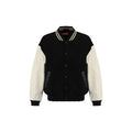 Wool L-Nyman Jacket by Diesel features ribbed collar, snap button front closure, ribbed cuffs, ribbed hem, two side welt pockets, contrast sleeves, iconic monogram on front and back, regular fit.