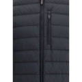 Parajumpers’ Last Minute hooded Down Jacket, treated with a water-repellent finish, is designed for comfort and protection. Featuring an adjustable hood with drawstring and front closure with a double-slider zipper, it offers three exterior zippered pockets and an interior pocket with Velcro closure. It features underarm ventilation, elasticized hem and cuffs and elastic rib inner collar. Completing the design is the Parajumpers patch on the sleeve and the iconic yellow tape at the collar closure.