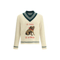 Valentino’s Le Chien De La Maison wool Sweater is a sleek and modern piece. With a ribbed V-neck that flatters the silhouette, it features ribbed cuffs and hem for a touch of comfort and style. Le Chien De La Maison embroidery on the chest adds a distinctive and refined detail, giving the sweater a unique and sophisticated character. Perfect for a casual yet sophisticated look.