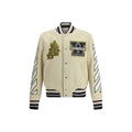 The Lion Wool Varsity Jacket by Off-White blends urban sophistication with bold detailing. Crafted from a premium wool blend, it features a structured silhouette with snap-button closure. The embroidered patches at the front and the striking lion and logo appliqué on the back panel underline the jacket’s statement appeal. Diagonal stripes along the sleeves add movement, while the ribbed collar, cuffs, and hem ensure comfort and structure. Finished with side welt pockets and internal lining, this piece seamlessly merges streetwear edge with refined craftsmanship.
