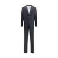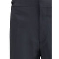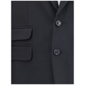 Dsquared2 Virgin Wool London Suit, consisting of jacket and pants. Wool blazer jacket, front button closure, three welt pockets on the front with flap, one slit pocket on the front, peaked lapels. Classic wool pants, front zipper and button closure, two welt pockets on the side, two welt pockets on the back.