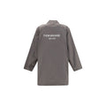 The Memory Tech Packable Smock by Thom Browne combines functionality and style in a lightweight, versatile piece that can be easily packed away into its removable pouch. It features a front button closure, two front flap pockets, and an interior pocket with name tag, along with a detachable interior pocket. Side button vents are finished with the brand’s signature striped grosgrain trim, while the back loop tab pays tribute to athletic heritage.