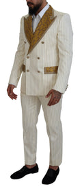 Off White Gold Striped Tuxedo Slim Fit Suit