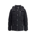 The Original 3Q Neoshear Down Jacket by Moose Knuckles combines style and practicality with a removable hood featuring detachable shearling trim and a down-filled collar for extra warmth. It features a one-way zipper with flap and buttons, one zipper pocket and two button pockets. This is complemented by the iconic metal signature logo on the design.