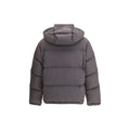 Dolce&Gabbana’s padded Down Jacket combines style and functionality in a bold design. It features a high collar and a zipper and snap closure for optimal protection. The hood is removable, ideal for adapting to different weather conditions. The logo plaque on the front adds a distinctive touch, while the two zippered side pockets complete the garment with practicality.