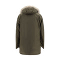 Parka Arctic Jacket by Woolrich Woolen, front closure with invisible zip and cista buttons, two side patch pockets with flap for closure, two welt pockets on the front, patch with iconic brand signature applied on the neckline, elastic ribbed cuffs, fur detail applied on the hood and removable, padded design, oversize fit.
