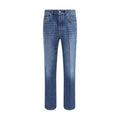 Cotton straight fit Jeans by Givenchy featuring a front button closure, five pockets, belt loops at the waist and a logo leather patch at the back. Essential straight-cut model, ideal for a sophisticated and timeless look.