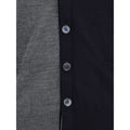 Fine virgin Wool Cardigan with V-neck front and button closure. It features two front welt pockets and side slits that can be adjusted with buttons. The ribbed cuffs are also adjustable with buttons and embellished with the iconic multicolored applique bands, a detail also found on the ribbed hem and multicolored panels. The sleeves feature multicolored horizontal bands, a distinctive symbol of the brand.