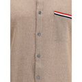 Thom Browne’s virgin wool Cardigan features a refined design and unique details. Featuring a button closure and a ribbed button-down collar, it offers understated, contemporary elegance. Ribbed cuffs and an asymmetrical hem add dynamism to the silhouette, while the front patch pocket, embellished with the iconic tricolor detail, signs the garment with an unmistakable touch of style.