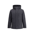 Woolrich virgin wool Down parka Jacket with high collar and adjustable drawstring hood, ideal for facing the coldest days in style. The front closure is finished with a flap and buttons, while two side welt pockets add functionality. The cuffs are adjustable with buttons for a comfortable and protective fit. The quilted design and all-over padding complete the garment, combining elegance and performance.