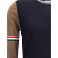 Thom Browne’s Virgin wool Sweater is an essential garment with a distinctive style. Made from soft cotton, it features a ribbed crew neck, cuffs and hem for a comfortable fit. The bands on the sleeves and tricolor design recall the brand’s iconic aesthetic, adding a graphic and recognizable touch to the look.
