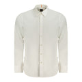 Elevate your wardrobe with the impeccable craftsmanship of a Hugo Boss long sleeve shirt. Tailored for a modern silhouette, this regular fit white staple is a perfect blend of sophistication and ease. Adorned with a subtle logo embroidery, it features an Italian collar and elegant 1-button cuffs, ready to make a statement in any setting. Never compromising on quality, it’s a piece made to last, designed in Bangladesh.