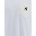 The WIP Cotton Jersey T-Shirt by Sacai x Carhartt is a hybrid piece combining Carhartt WIP’s Pocket T-Shirt and sacai’s T-Shirt. Crafted from crisp, tightly knit cotton jersey, it features Carhartt WIP duck canvas trims on the chest pocket and side slits. A co-branded woven label is applied to the pocket.