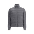 Contemporary-cut Herno bomber Jacket made of soft wool with a mélange pattern. The model features a high collar, a double-slider front zipper closure and two side welt pockets. The ribbed knit sleeves and ribbed hem add a touch of texture and definition to the design. A warm and refined garment ideal for casual yet detail-oriented looks.