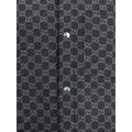 The Wool Jacket by Gucci embodies refined elegance with unique detailing. An all-over GG monogram defines the surface, while the contrasting classic collar breaks the pattern with sophisticated balance. The front fastening is highlighted by silver-toned buttons engraved with the Gucci name, adding a distinctive touch. Traditional sleeves are complemented by a single overlay detail on the left shoulder, lending a contemporary sartorial twist. A single button closure at the cuff completes the design, striking the perfect harmony between tradition and modern style.